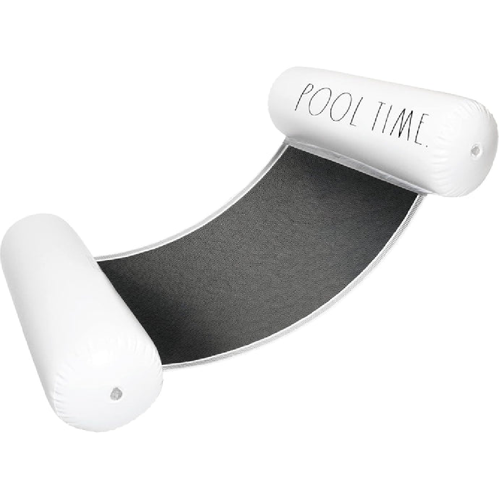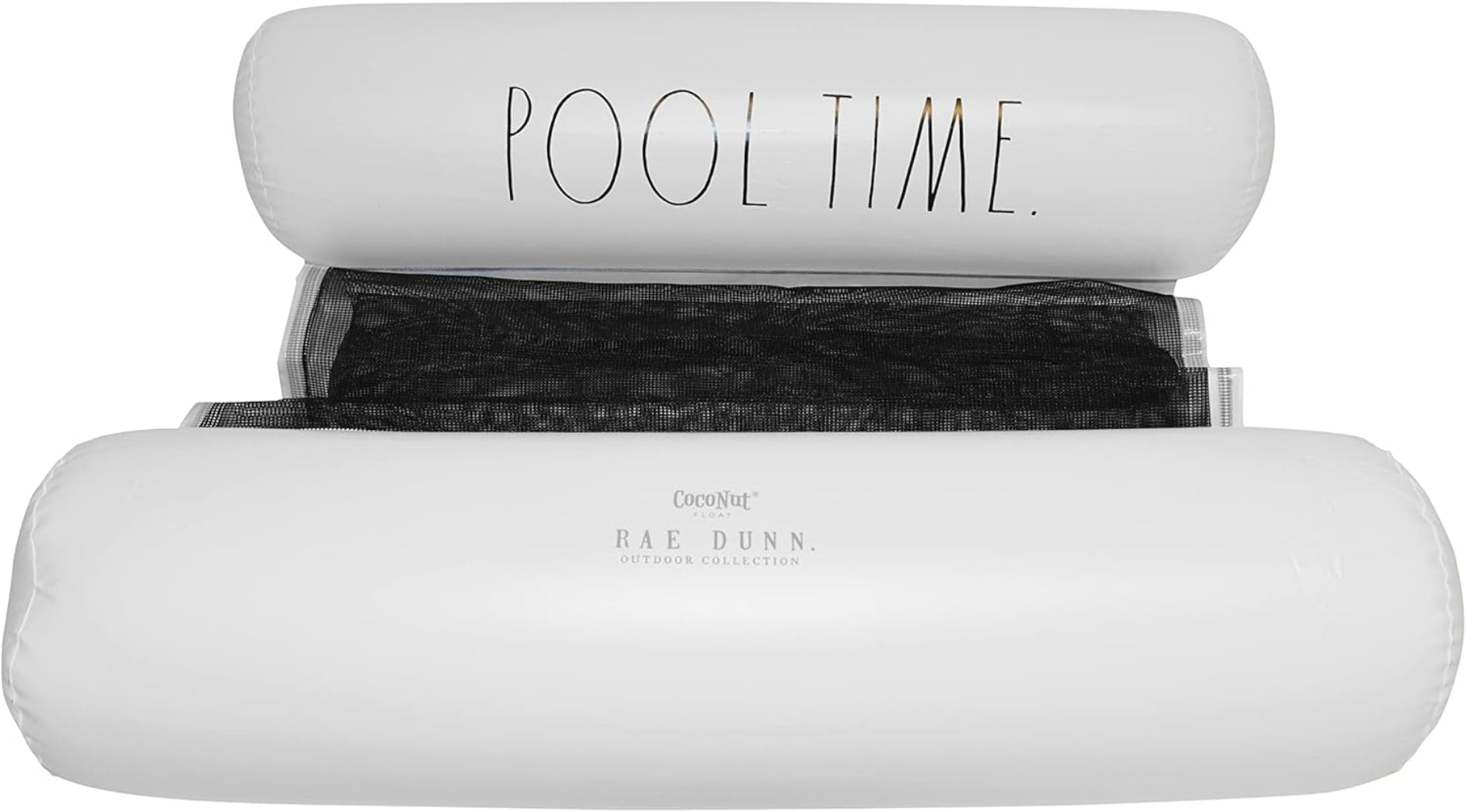 Effortlessly glide into relaxation! Designed for ultimate versatility, this stylish Rae Dunn float comfortably suspends you in the cool water. Sit upright in the mesh center like a chair or saddle float, or lay your head back on the plush inflatable pillow for all-day lounging in style. When it's time to pack up, simply roll it up for compact storage and easy transport. Perfect for ages 8+!