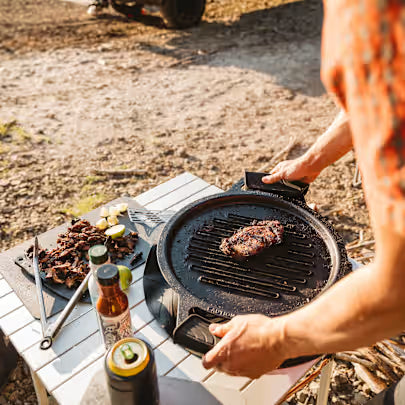 Experience open-fire grilling at home or on the go. Designed specifically for the Fire Pit Cooking System, the Cast Iron Grill features wide grates and consistent heat for perfectly seared steaks, vegetables, and more.