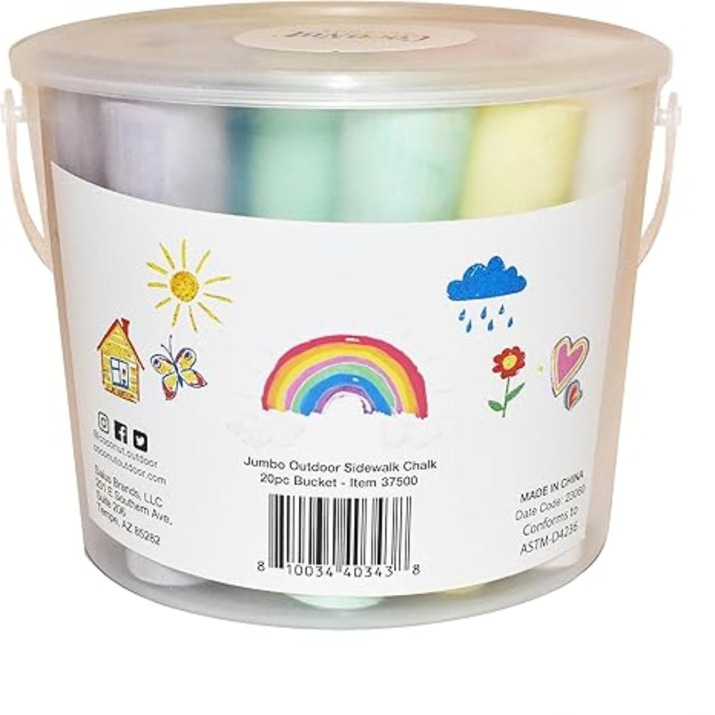 Jumbo Sidewalk Chalk Bucket - 20 Pieces, Non-Toxic, Washable Jumbo Chalk - Create Colorful Artwork on the Sidewalk or Chalkboard, For Kids Ages 3+